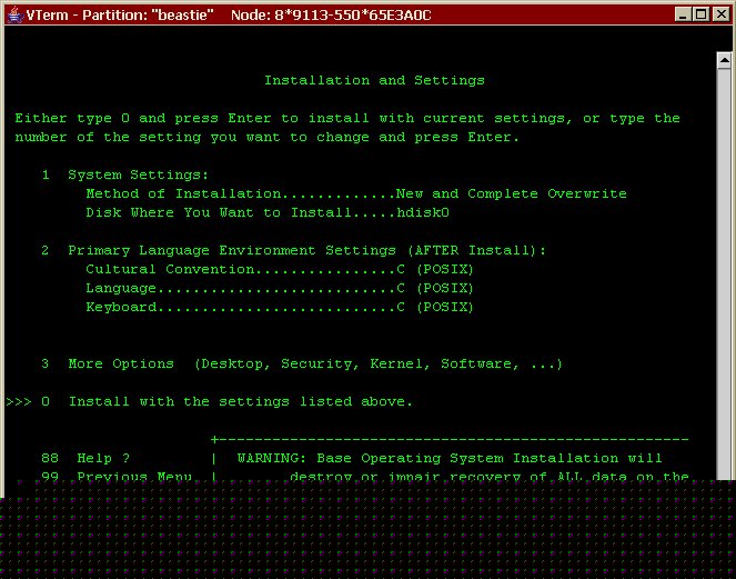 # TERM=vt220 smitty nim